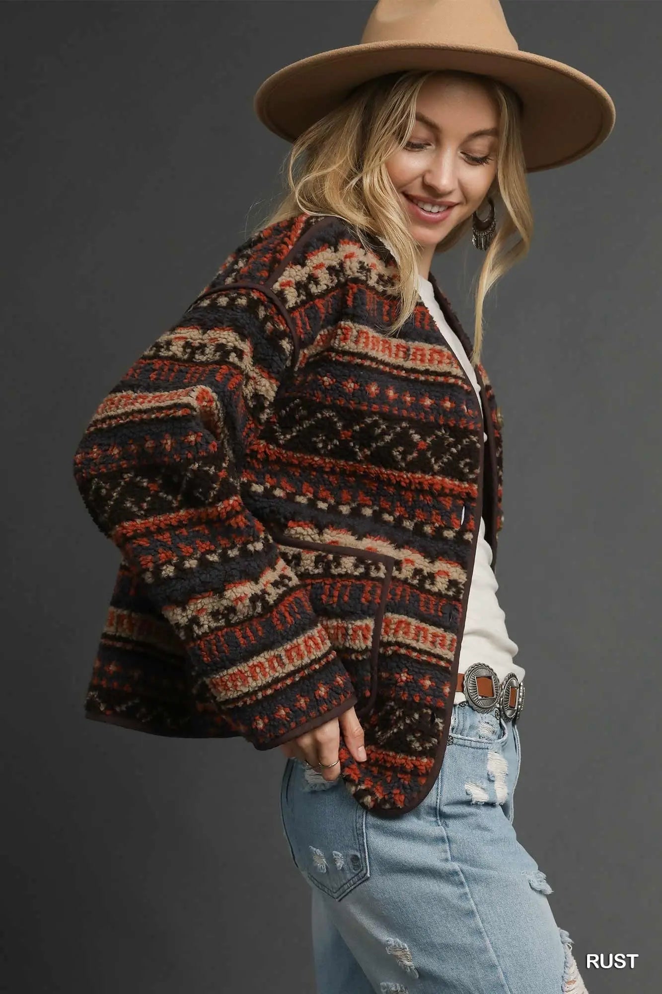 Aztec Patch Knit Button-Up JacketKey Features• Button-up front closure• Long sleeves• Front patch pockets with...
