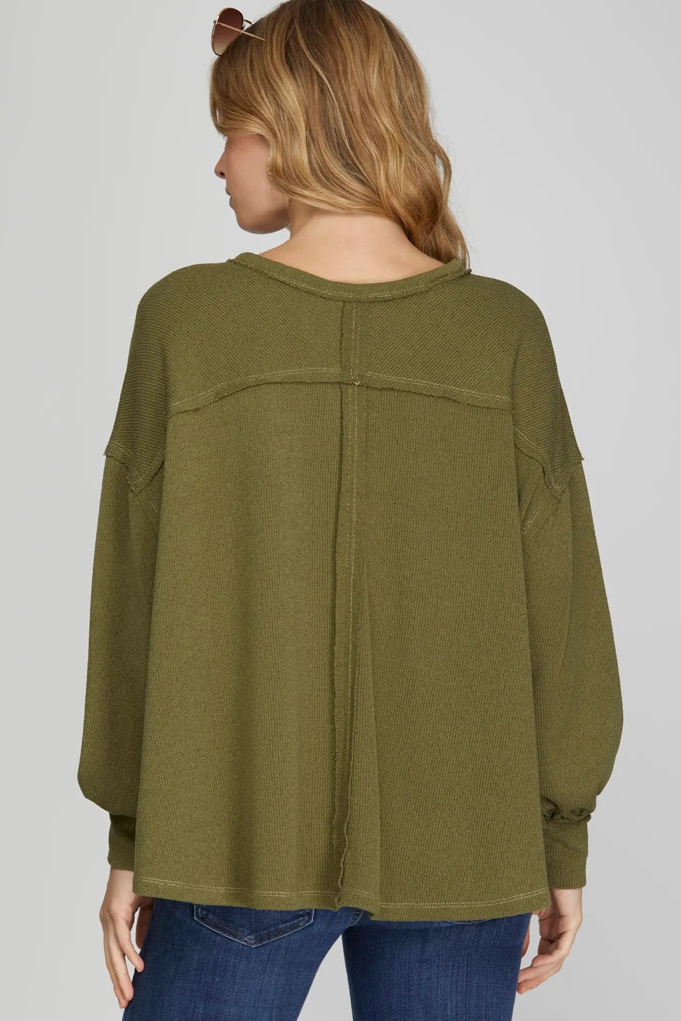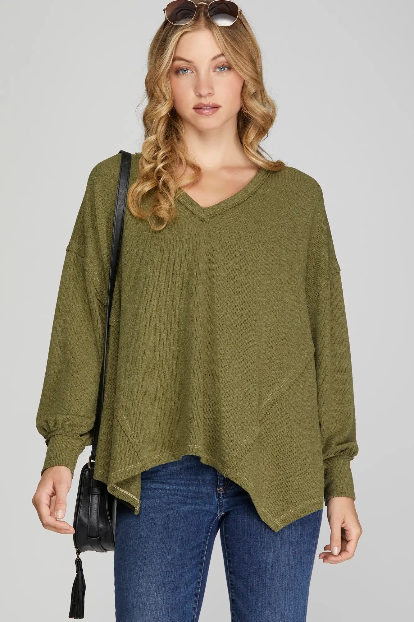 The Asymmetrical Hem Top in Olive combines contemporary design with versatile styling. This long sleeve...