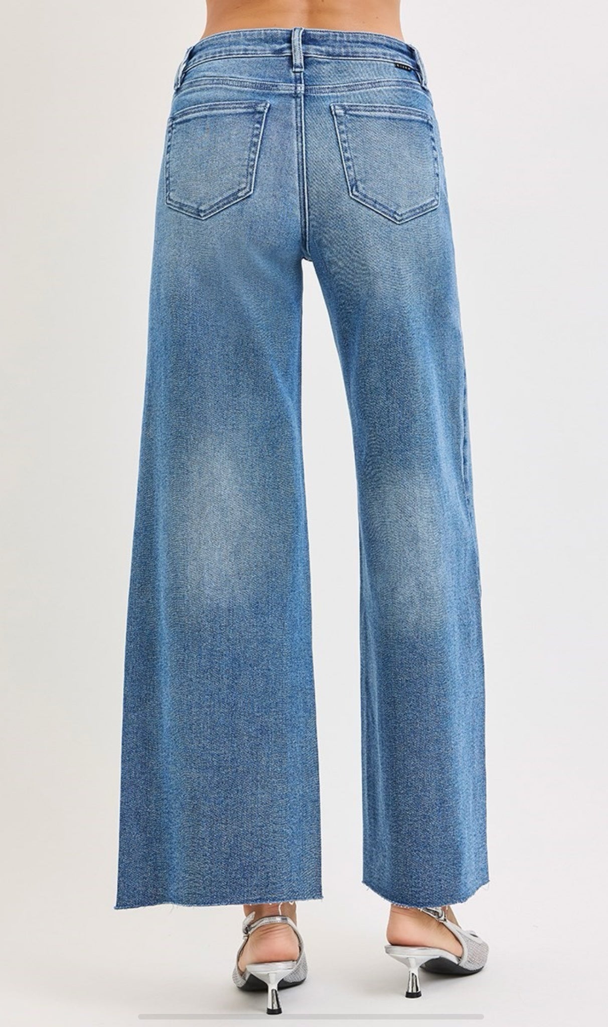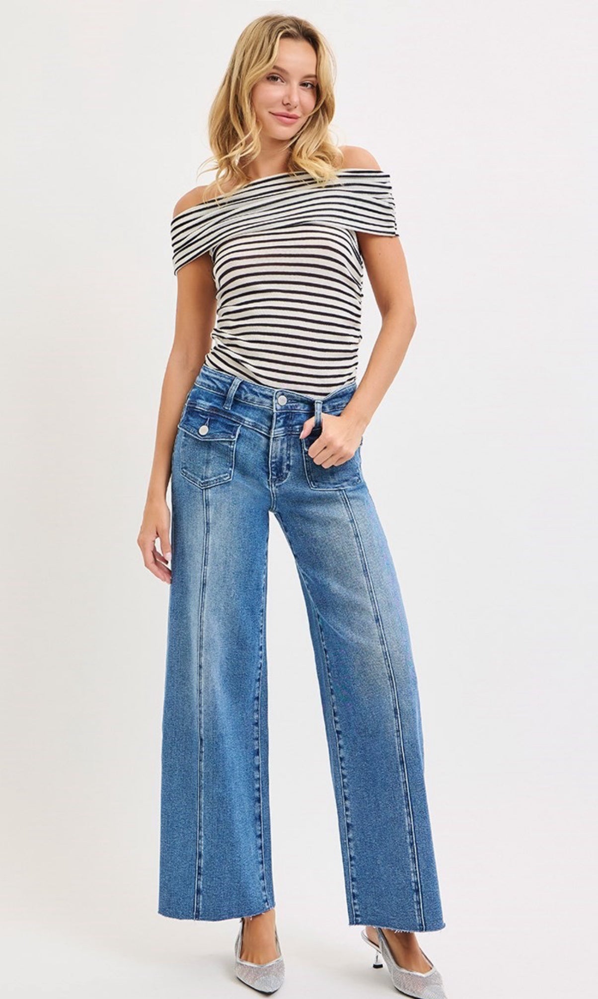 HIGH RISE ANKLE WIDE JEANS WITH FRONT FLAP PATCH POCKET- Rise 10 1/4" | Inseam...