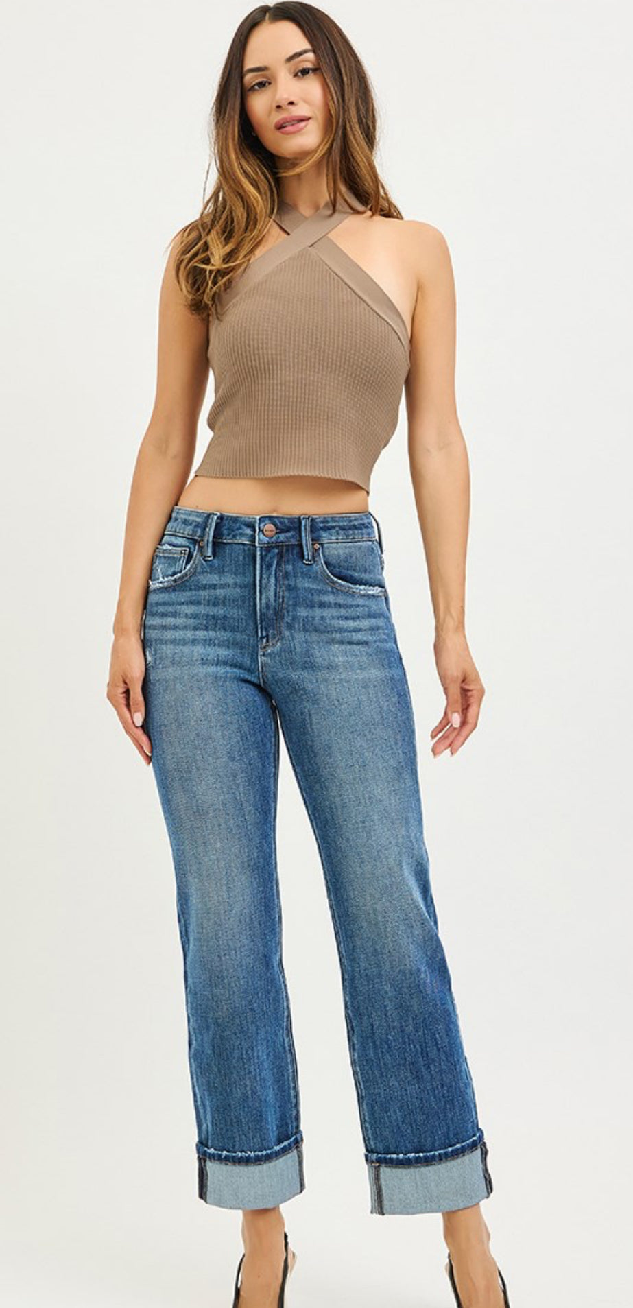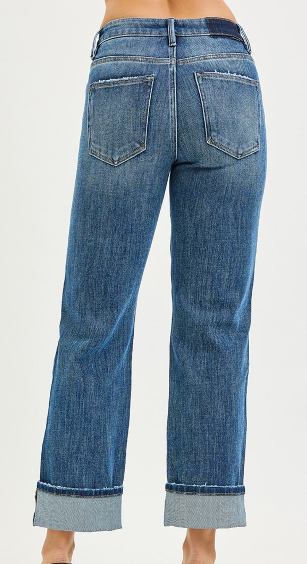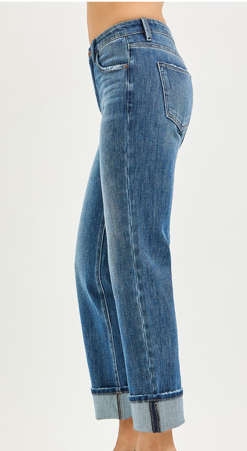 4 WAY STRETCH SLOUCHY STRAIGHT JEANS WITH CUFFED HEM- Rise 10 3/4" | Inseam 27"(After...