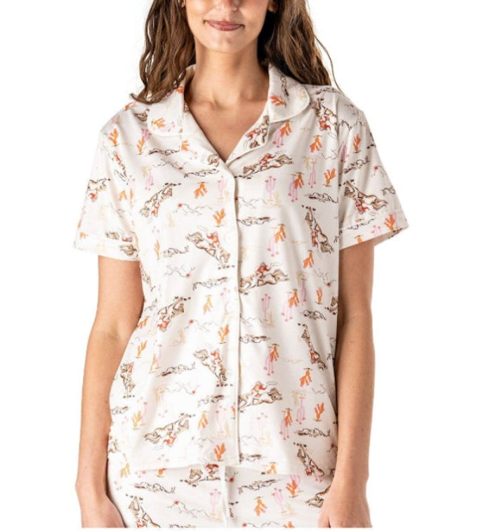 The perfect PJ top for lazy mornings, comfy days and cozy nights. This classic button-down...
