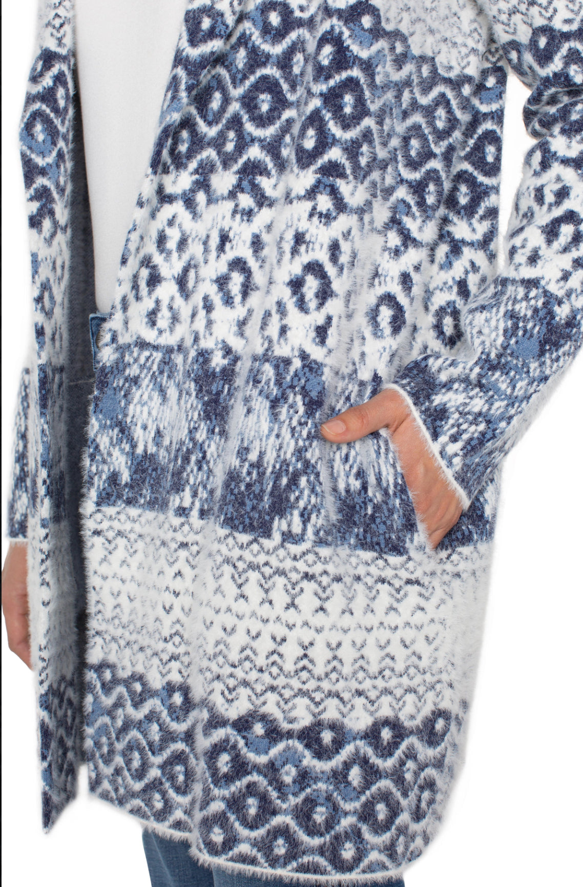 In a navy shibori print, this open-front coatigan is the perfect balance of structure and...