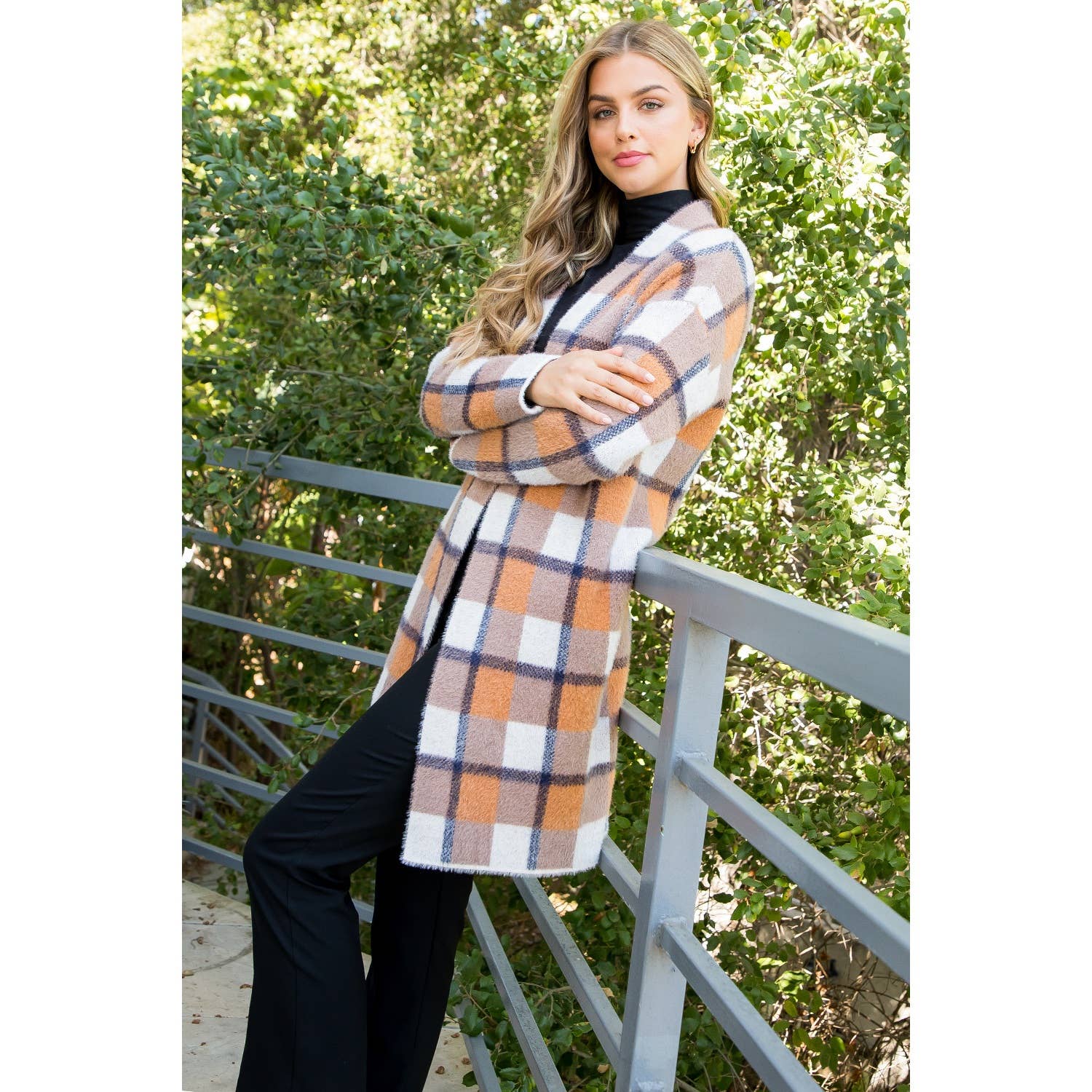 Plaid Mohair Long Cardigan Designed in USA Fabric Content: KNIT / 100% Nylon